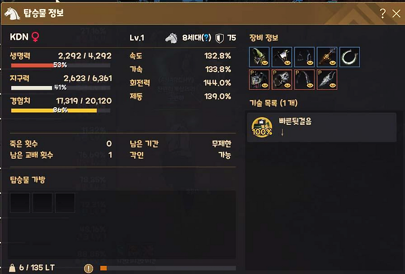 환기 말의 스킬 습득 시스템과 앞발작 스변작 검은사막 인벤