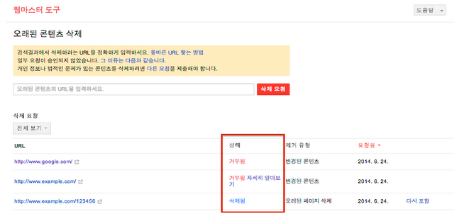 웹마스터도구를 활용한 구글 검색결과 삭제 방법 자이언트