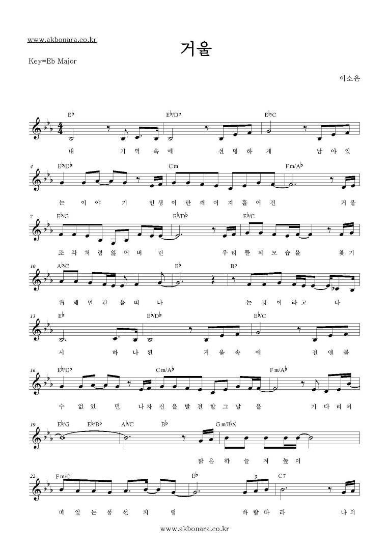 악보 거울 이소은악보 거울악보 피아노악보 코드악보 최신악보 악보나라