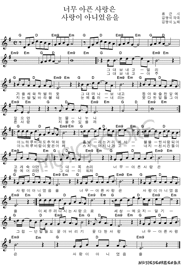 김광석 너무 아픈 사랑은 사랑이 아니었음을 악보 악보바다