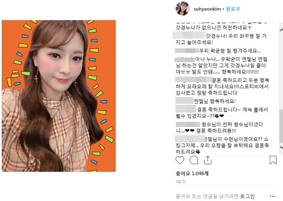 김수현 아나운서 우왁굳 결혼 인스타그램 축하메시지 쇄도에도 입장 無
