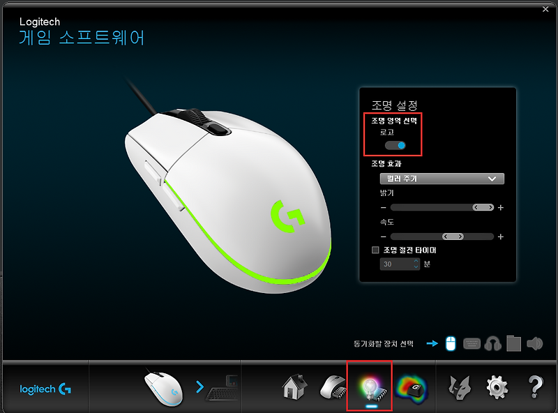 게이밍 마우스 로지텍 G102 Prodigy 벌크 마우스 조명 설정