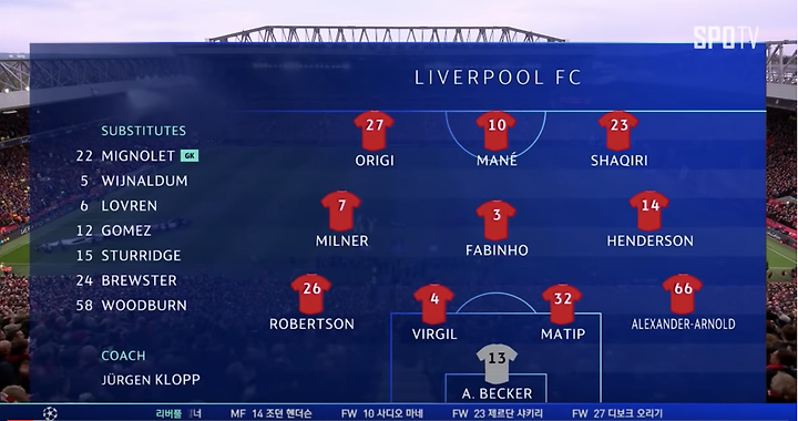 2018 19시즌 리버풀 예상 베스트 11