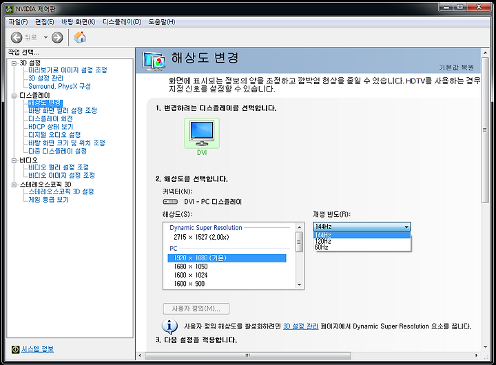 모니터 144hz 설정 주사율 및 해상도 변경 방법 네이버 블로그