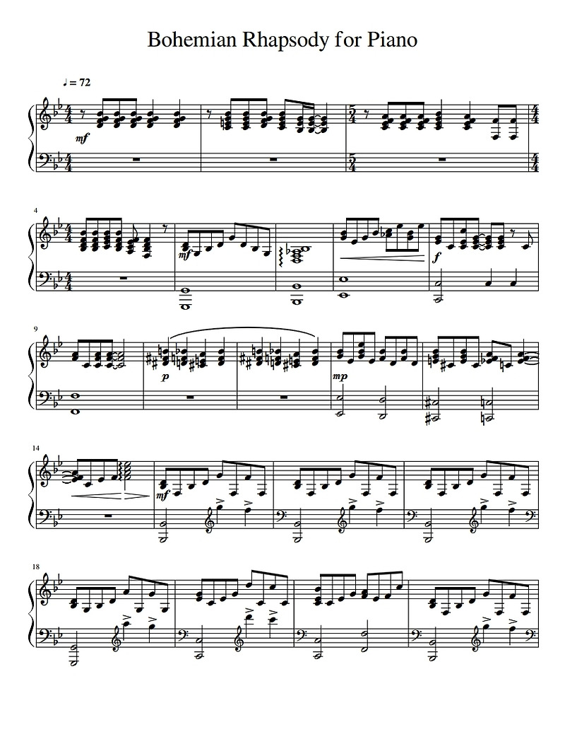퀸의 보헤미안 랩소디 피아노 악보입니다 Queen Bohemian Rhapsody For Piano 피아노악보 무료악보 Pdf 악보