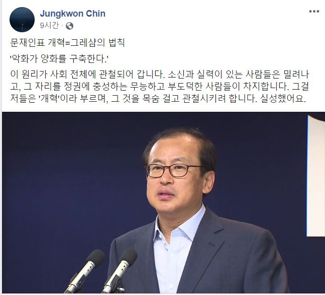 진중권 문재인표 개혁 그레샴의 법칙 악화 惡貨 가 양화 良貨 를 내몰아