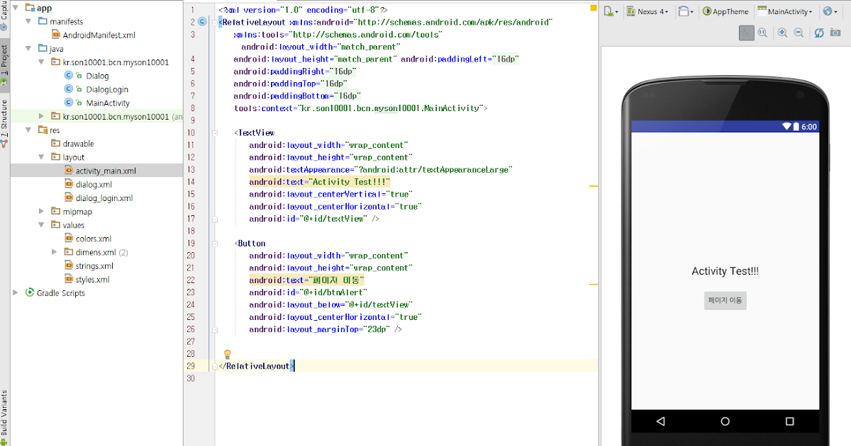 안드로이드 스튜디오 강좌 1부 버튼 만들기 네이버 블로그