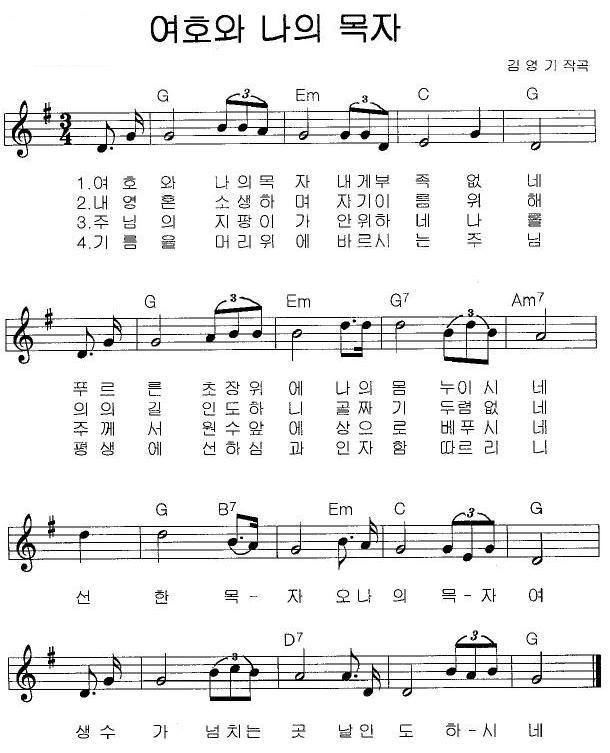 악보통 여호와 나의 목자 주와 같이 길 가는 것