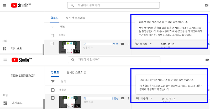 유튜브 Youtube 미등록 Vs 비공개 차이