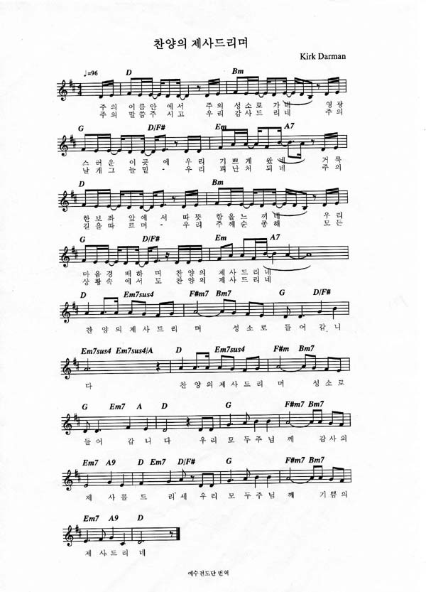 악보 게시판 Kirk Carroll Dearman 찬양의 제사 드리며 반주 악보 By 천정아