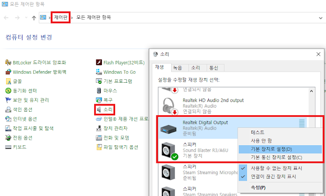 윈도우 10 소리 사운드 장치들 안들 릴 때 간단 해결책