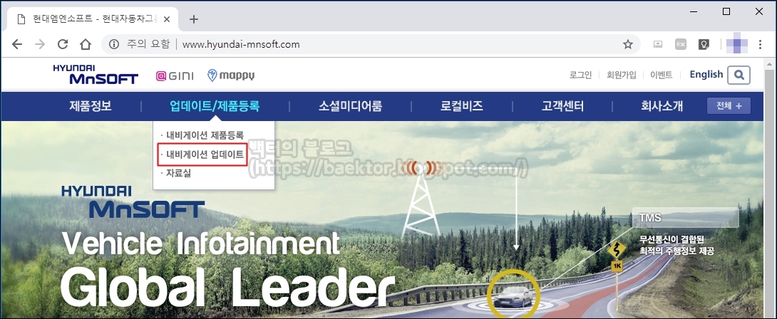 현대엠엔소프트 지니 Gini 네비게이션 업데이트하기
