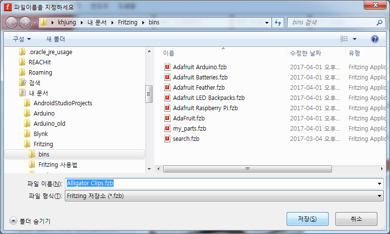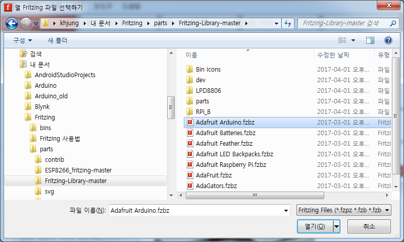 꿈의 오아시스 아두이노 회로도 그리는 프로그램 Fritzing에 새로운 부품 추가하기