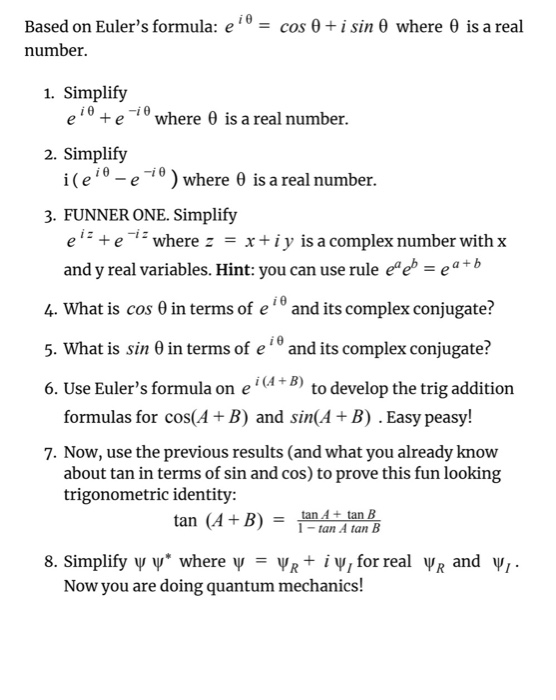 Solved Based On Euler S Formula Ei Cos I Sin Wher Chegg Com