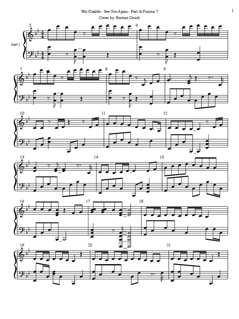 Wiz Khalifa See You Again Sheet Music Download Print Sheet Music Piano Sheet Piano Sheet Music