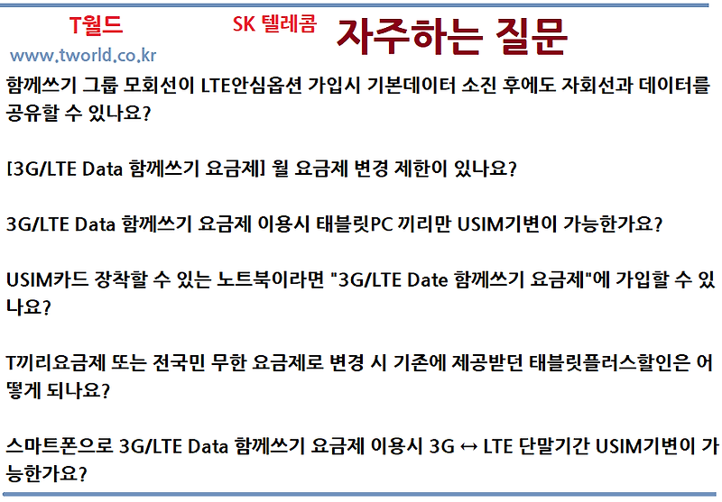 Ltedata함께쓰기basic 요금제 상품서비스 T World