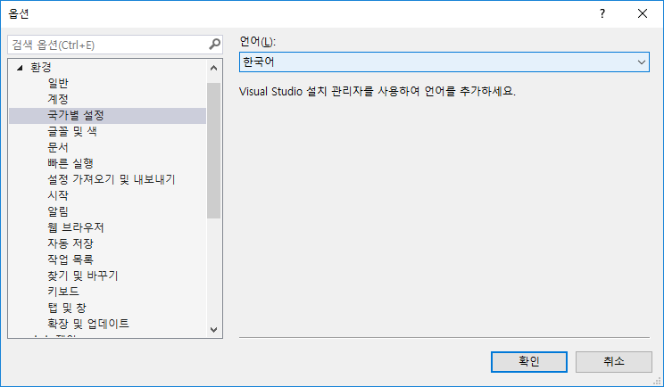 Visual Studio 2017 영문 언어팩 설치 및 적용
